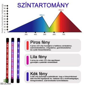 - Lila fény: a piros és kék fény együttesen gyorsítják a növények növekedését, erősödését