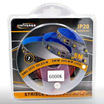 Hajlítható LED szalag 12v 2835-60D-5w-450lm/M 6500k IP20 5M