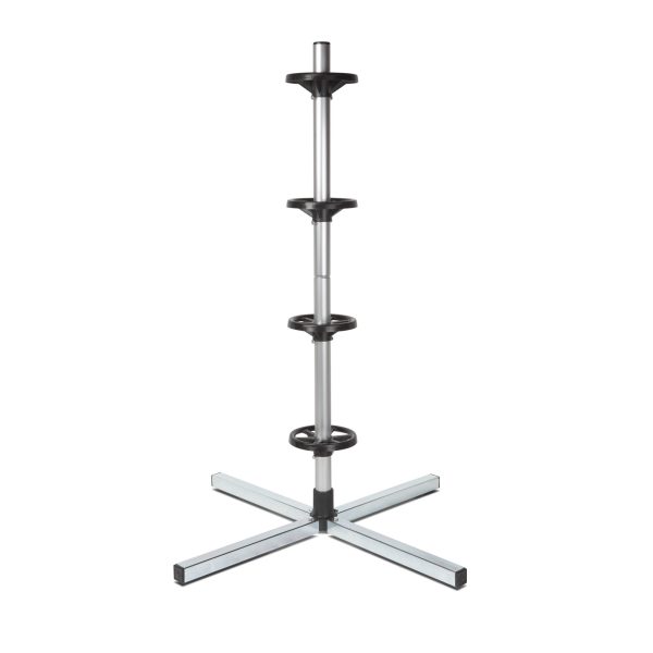 Tárolja éppen nem használt gumiabroncsait szabályosan és óvja meg őket a deformálódástól. Ennek az állványnak a segítségével a téli vagy a nyári kerekeket kis helyen tárolhatja. Az oszlopon lévő tartók biztosítószeggel rögzíthetőek, így véletlenül sem érhetnek egymáshoz a kerekek, ezáltal megakadályozható a legalsó gumi deformálódása. Az állvány könnyen és gyorsan összeszerelhető és szétszedhető ha nincsen rá szüksége.