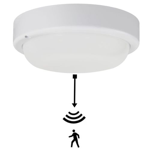 Led ufó lámpa mikrohullámú mozgásérzékelővel 12W, 1400 lumen, 4000 kelvin, közép fehér. IP54 vízálló, kör alakú, önálló mennyezeti Led lámpa. Extra energiatakarékos, mivel ez a lámpa csak a mozgás érzékelése esetén világít. amennyiben nem érzékel mozgást 60ms után kikapcsol! Csak sötét helyeken kapcsol be, 20 lux alatt! Érzékelési távolság 7 méter. Nem állítható se az érzékenység, se a világítási idő! Kiválóan alkalmas ablak nélküli folyosókra, pincékbe, lépcsőházakba, wc-be! Oldalfalra vagy plafonra is könnyen, házilag is 3 csavarral felszerelhető! Ez a lámpa 185-265V között működik, nem vibrál, nem bántja a szemet! Kiváltható vele egy 100 wattos hagyományos égős mennyezeti vagy oldalfali ufó lámpa!