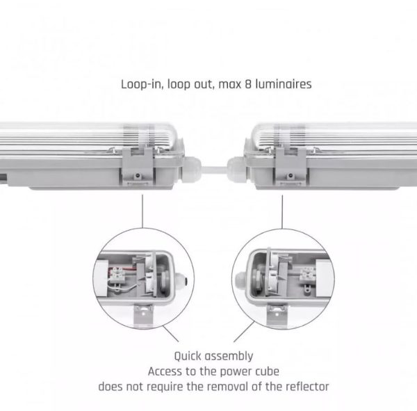 Címkék: 2x60cm, armatúra, ip65, led fénycső, T8 foglalat