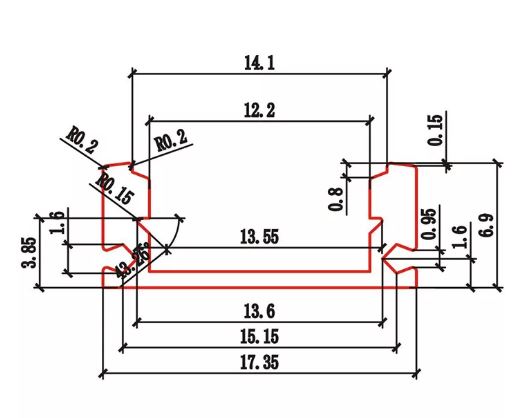 Kivágás (mm)17.35 x 6.9 x 2000 mm