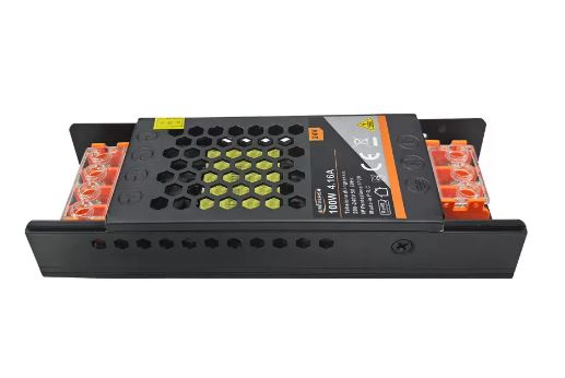 12/24 Voltos LED tápegység, jól szellőző, perforált fém házban található.